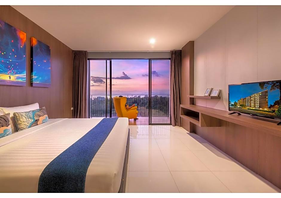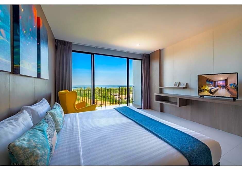The spacious twin/double room provides air conditioning, a seating area, a balcony with sea views as well as a private bathroom featuring a shower.
